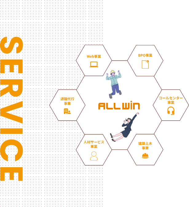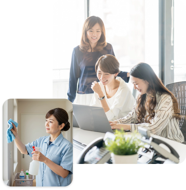 オールウィンは、現場からオフィスまで。 働く女性が笑顔で活躍できる社会を、 6つの事業を通じて支えています。